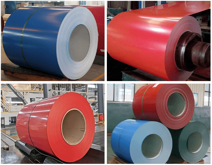 Color coated steel coil is a product made of cold-rolled steel coil and (aluminum) galvanized steel coil after surface chemicaltreatment, coating (roll coating) or composite organic film (PVC film, etc.), and then baking and curing. It not only has the properties of high mechanical strength and easy forming of steel materials, but also has good decoration and corrosion resistance of coating materials.